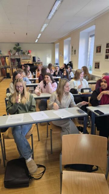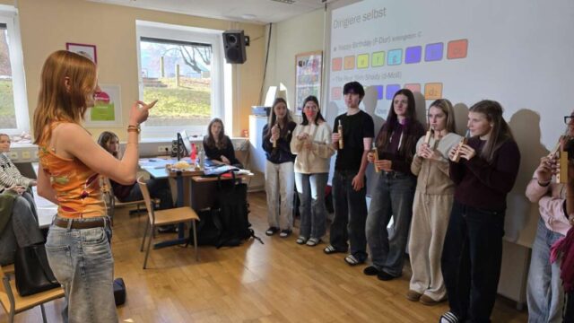Ein wichtiger Teil des Workshops war der Orgelbau. Uns wurde erklärt, aus welchen Teilen eine Orgel besteht und wie Orgelpfeifen funktionieren. Besonders spannend war, dass wir eigene Orgelpfeifen bastelten. Mit diesen selbst gebauten Pfeifen spielten und dirigierten wir sogar einfache Lieder, was allen viel Spaß machte.