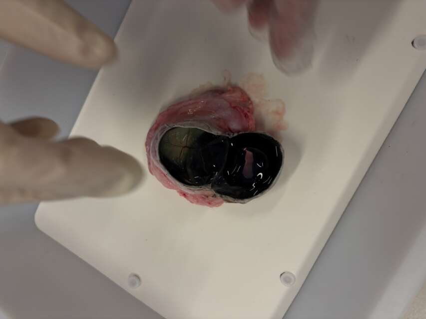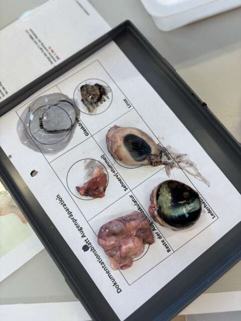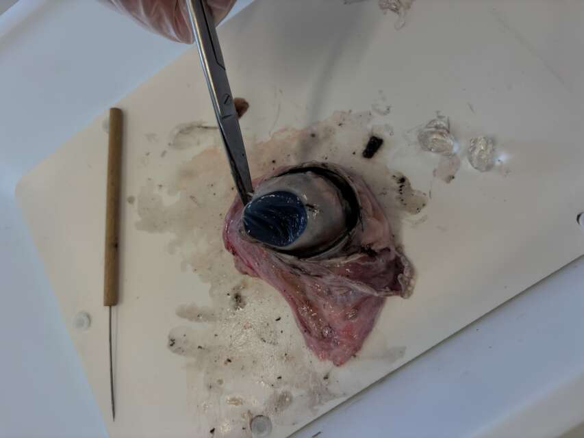 Den Sehnerv konnte man sehr deutlich auf der hinteren Seite erkennen.  Durch die Sektion konnten wir die theoretischen Inhalte aus dem Unterricht praktisch nachvollziehen. Es war eine spannende Erfahrung.