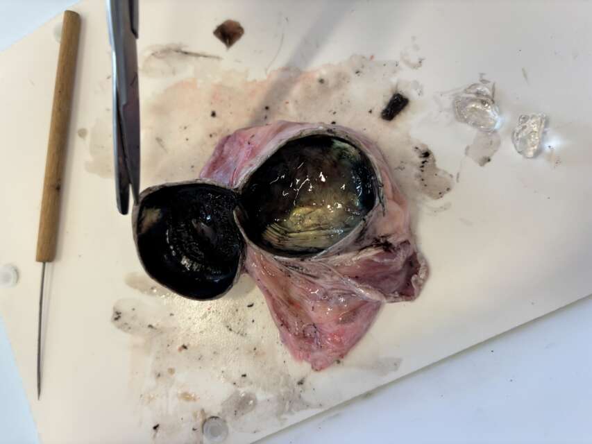 Im Inneren konnten wir den Glaskörper als gelartige Masse sehen, die den größten Teil des Auges ausfüllt. Besonders interessant war die Linse, die klar und elastisch ist und für das Scharfstellen verantwortlich ist. Außerdem haben wir die Netzhaut und Lederhaut betrachtet.